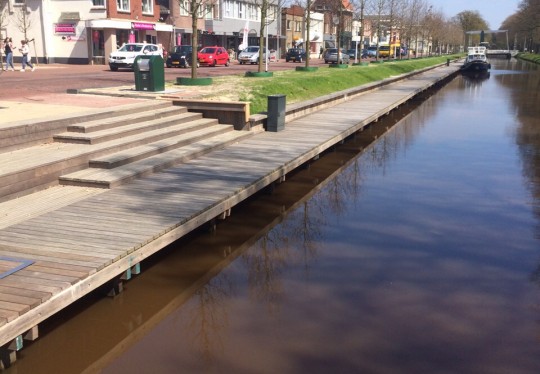 Als herinrichtingsgebied binnen het Centrumplan Ter Apel is de Hoofdstraat in de afgelopen anderhalf jaar getransformeerd tot een aantrekkelijk verblijfsgebied. Aan de lange wandelsteiger leggen vaarrecreanten in het winkelcentrum aan.